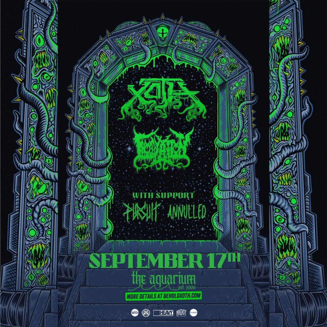 Xoth on tour with Inoculation on Wednesday, September 17th at The Aquarium + locals Pursuit and Annulled Tickets on sale NOW! 7PM Doors | 8PM Music | $12ADV | $15DOS | 21+