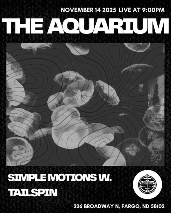 Simple Motions is excited to return to North Dakota this November! First stop: The Aquarium in Fargo, teaming up with the wildly entertaining Tailspin. Expect a night full of energy, good tunes, and great company. 🪗 8PM DOORS | 9PM MUSIC STARTS 🪩 9-10:30 Tailspin 💐 10:45-12:15 Simple Motions 🎟️ $10ADV | $15DOS 🍻 21+ […] |