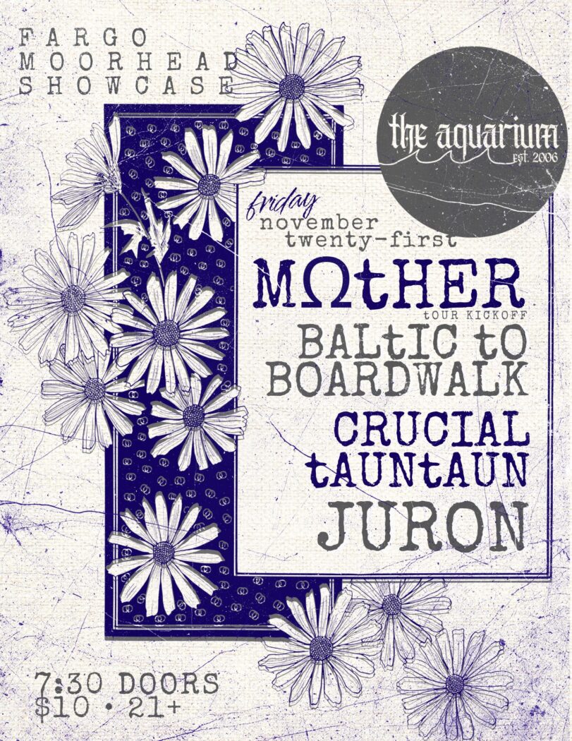 A Fargo-Moorhead Local Showcase and tour kick off for MΩTHER! ONLY $10 FOR SOME OF THE REGIONS BEST: MΩTHER Baltic to Boardwalk Crucial Tauntaun JURON 7:30PM Music • 8PM Music • $10 (Cash Only) • 21+ |